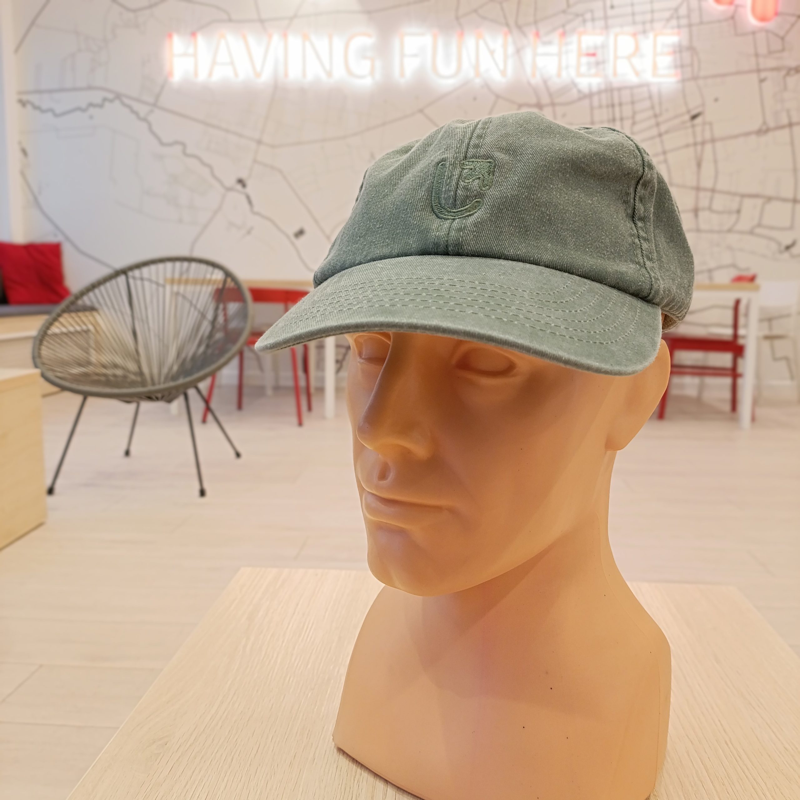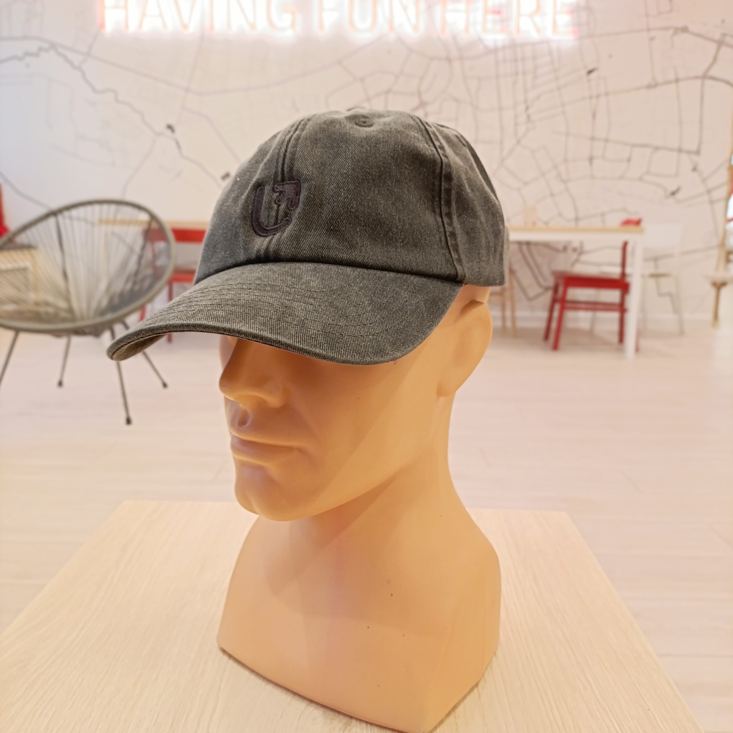 Czapka z daszkiem, rozmiar uniwersalny, zapięcie na metalową klamerkę.